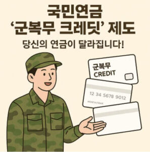 국민연금 군복무 크레딧  제도를 총정리 및 친절하게 안내해 드립니다. 2008년 이후 입대한 사람이라면 연금가입기간 6개월 추가 인정! 군복무크레딧 자격조건부터 연금 수급에 미치는 영향까지 쉽고 자세히 정리해 봤어요. 혜택, 국민연금 가입기간 추가, 2026년 달라지는 점까지 모두 확인해보세요.